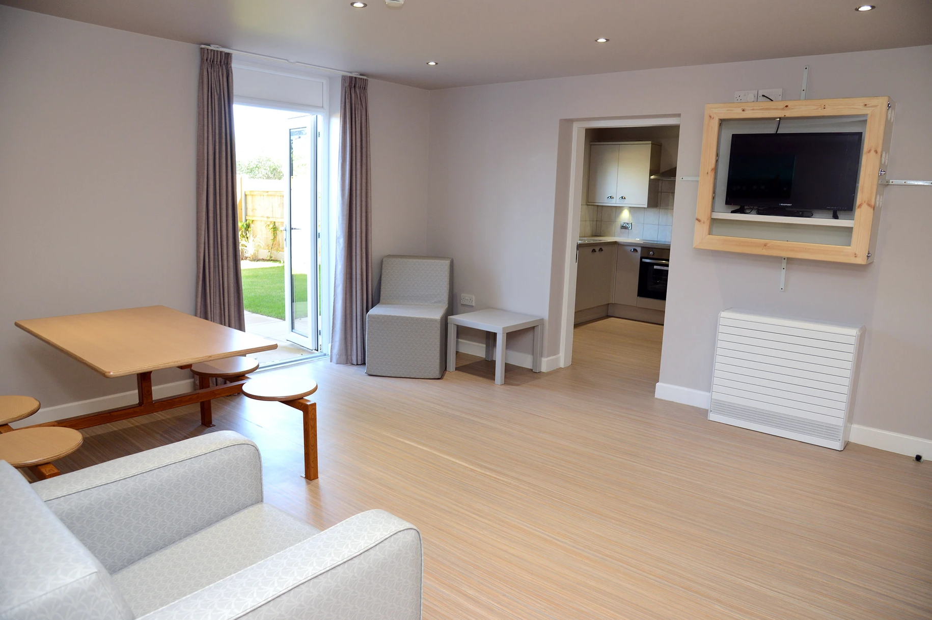 Our solution for the apartments featured kitchens that could be closed off when not in use. Sensory spaces, including shower rooms, bathrooms, and general sensory rooms were designed to stimulate the senses to create calm, reassurance, and joy using colour, light, sound, and texture. Outdoor areas included play equipment, a sunken trampoline, and sensory gardens.
