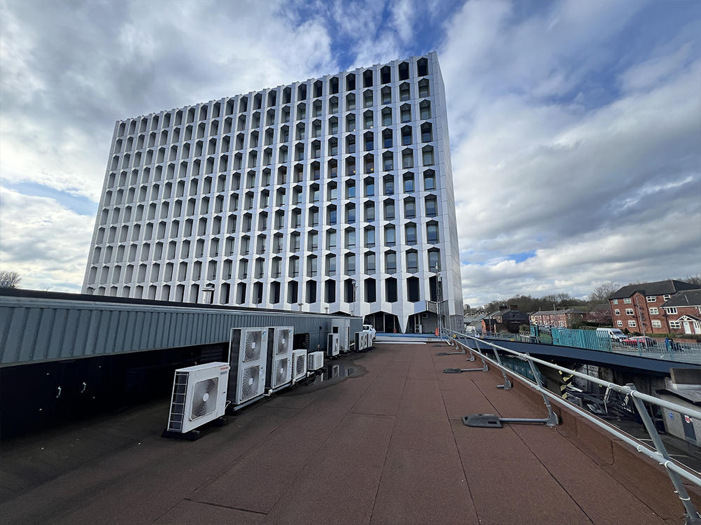 The overall brief for this project was the refurbishment of an existing laboratory at Hexagon Tower in Manchester for a business specialising in chemical research & development (R&D). The project included dividing the space into two separate laboratories, incorporating a 9 high walk-in fume cupboards up to 3.6m high, and installing a large air handling unit (AHU). Unsurprisingly, the nature of working on a laboratory was extremely complex with several issues to navigate: