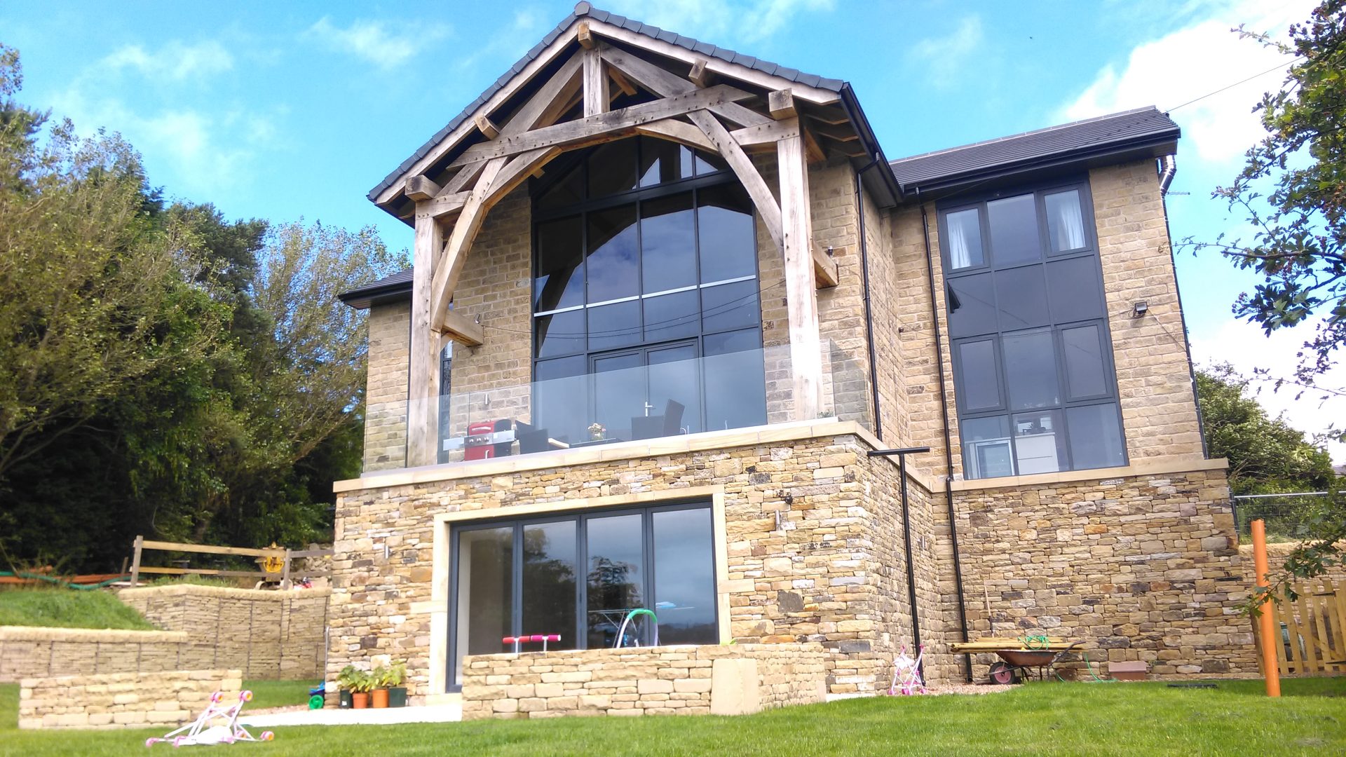 The outcome is a truly impressive home that stayed very true to the vision they had set out in their original idea boards. Even with the engineering challenges of the site, design features, and signature oak frame, we stayed within a very tightly controlled budget and the client was very happy with the outcome.