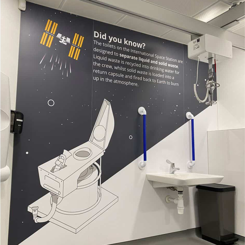 As well as these ‘high glamour’ locations, we have also helped them deliver accessible facilities to important spaces that people need to be able to use, such as schools, leisure centres, and transport hubs. Being able to play a part in making spaces accessible for people with disabilities is something that we’re really proud of. Plus, we love the vibrant images and graphics that RISE add to the interiors, personalising them for the site and adding aesthetic details to the functional space.