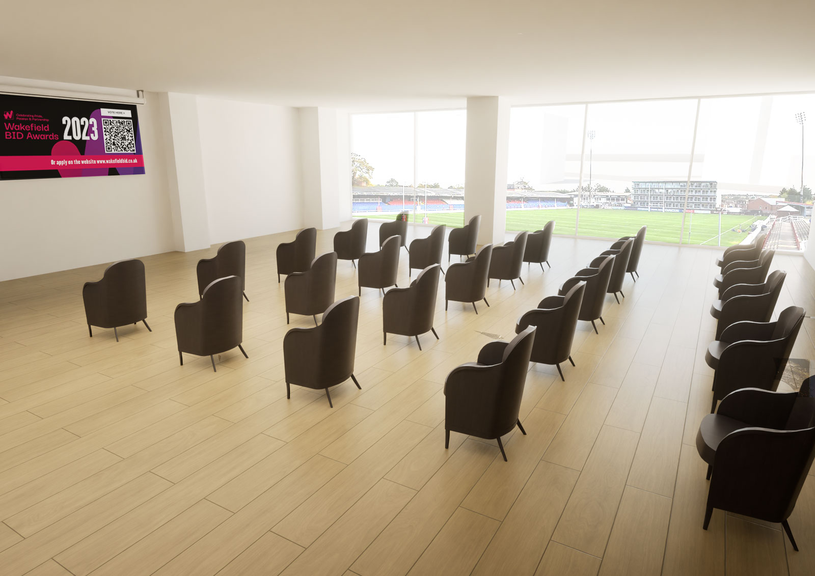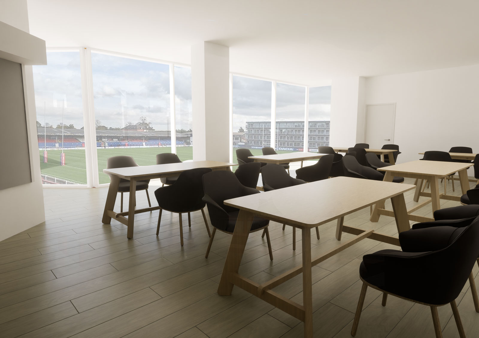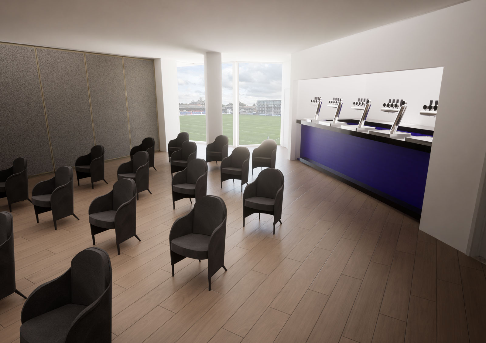 We were appointed to remodel bars and changing rooms at the club to create a multi-functional space that would satisfy the needs of a diverse range of stakeholders: the community foundation, hospitality management, the owners of the club, and others in the local community. The primary objective of the space was to be a resource to facilitate fundraising for the club and the community, maximising opportunities on non-match days.