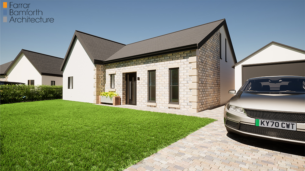 We initially offered 3 bungalow design options; a traditional design, a highly contemporary design, and one halfway between the two. The client surprised us by choosing the contemporary design, reflecting that those seeking single storey dwellings now are looking for something much more modern than they would have 20 years ago and the style of bungalows needs to evolve.